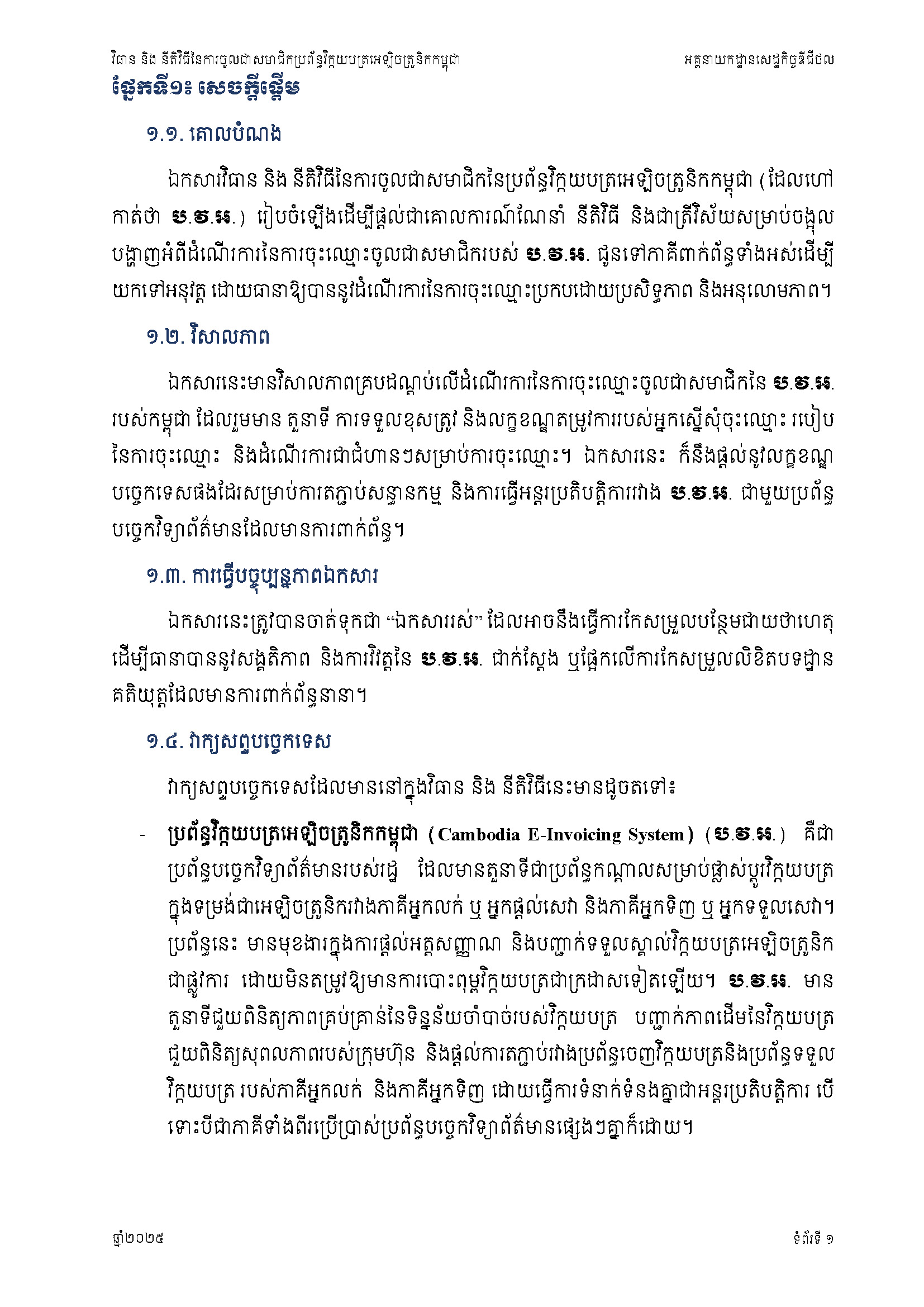 វិធាន និងនីតិវិធីនៃការចូលជាសមាជិកប្រព័ន្ធវិក្កយបត្រ on November 26, 2025 Get link Facebook X Pinterest Email Other Apps វិធាន និងនីតិវិធីនៃការចូលជាសមាជិកប្រព័ន្ធវិក្កយបត្រអេឡិចត្រូនិកកម្ពុជាឯកសារនេះ មាន ២៣ទំព័រ ដែលមានតំណរភ្ជាប់ទាញយក PDF File ខាងក្រោមទាញយក PDF Comments